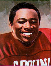At tailback for the S.C Gamecocks, Rogers rolled up 21 consecutive 100-yard games, including every game in his senior year, when he led the nation in rushing, with 1781 yards and tied for third in TDs with 14. On top of these great statistics,