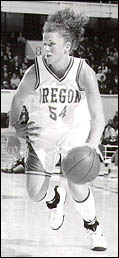 Ashley's teammate at Oregon City, Branne Meharry (1997 Oregon) bolted out of the blocks her freshman year at Oregon. Brainne, The Oregonian's MVP of the 1997 Shootout, was leading the team in both scoring and rebounding when she suffered a season-ending knee injury in January. But despite her loss, the Ducks rallied to make the NCAA thanks in part to the impressive efforts of Mountain View's Angelina Wolvert (1997 Washington). As a freshman, Angelina led Oregon with 23 points and 10 rebounds in their 79-76 loss to Rutgers in the first round. With Brianne and Angelina coming back next season, everything is looking up.